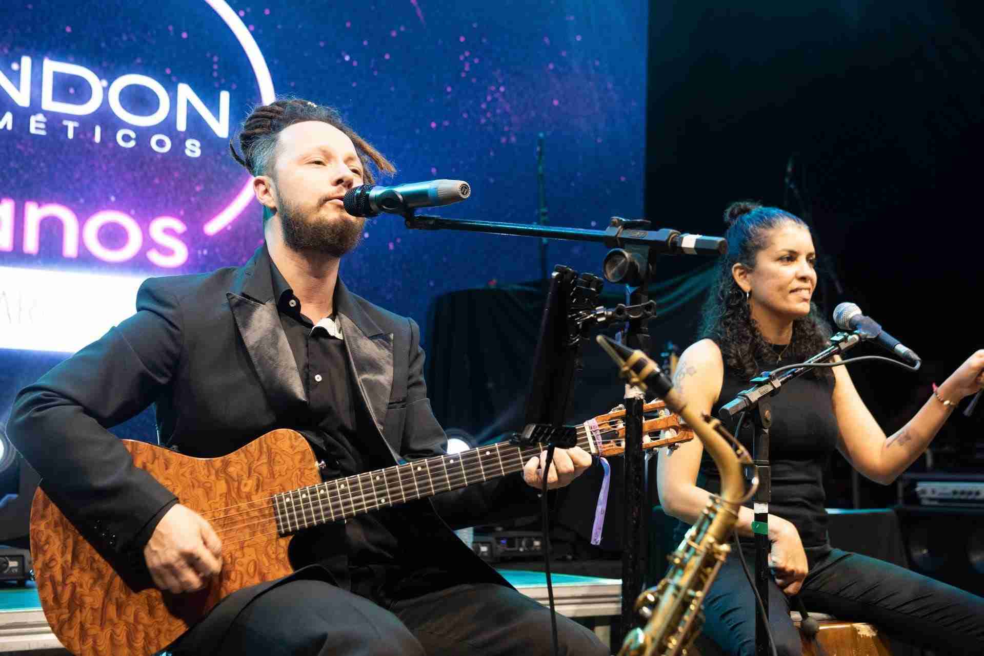 O cenário deslumbrante também foi palco para atrações musicais incríveis! A trilha sonora da noite iniciou com a envolvente performance do talentoso Alex Músico, que encantou o público com seu som acústico. O ponto alto da festa foi o espetáculo “Música da Gente” com Bia Barros e Mimi Reis. Uma emocionante viagem no tempo pelo melhor da música sertaneja, que conquistou o coração de todos e relembrou os grandes clássicos. Além disso, para dar desfecho as comemorações com chave de ouro, Caio Cesar e Maicon Monteiro subiram ao palco, proporcionando um show animado e contagiante. Foi esse clima de alegria que consolidou esse momento especial, que ficará marcado na história da London Cosméticos SC e de todos que estiveram presentes.