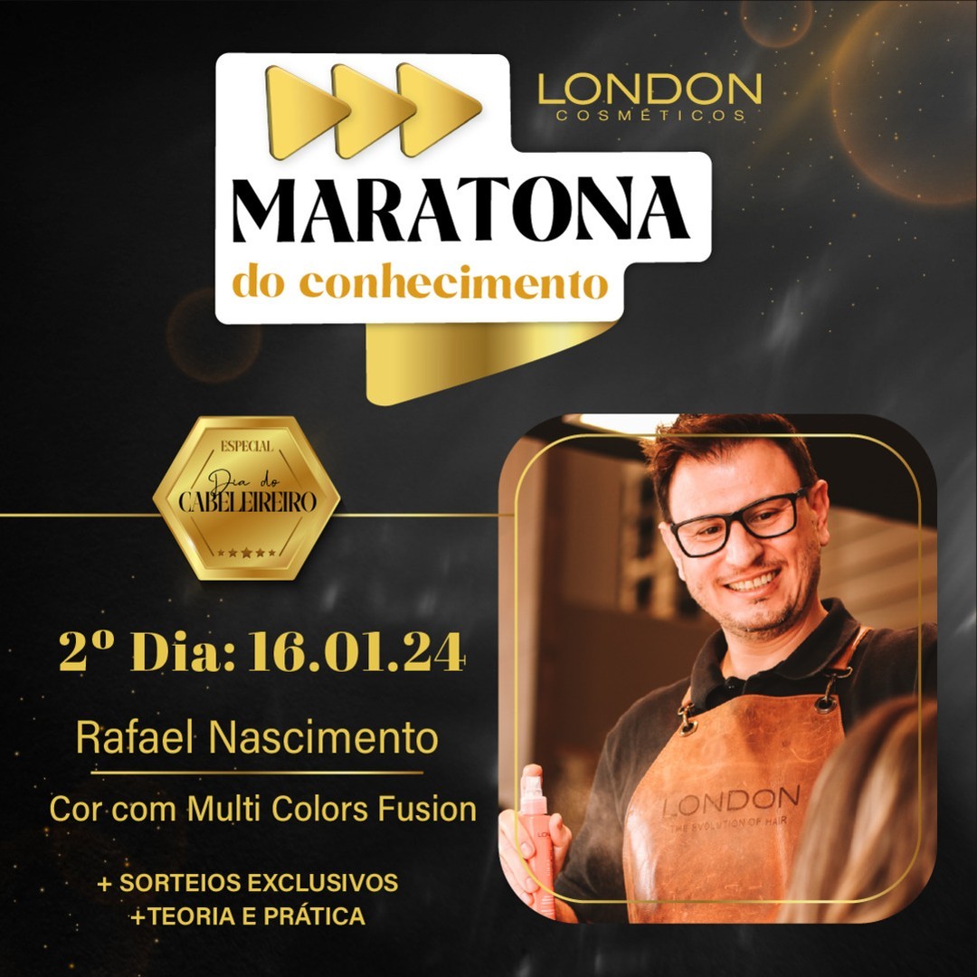 No universo da beleza capilar, a cor é uma expressão única de estilo e personalidade. E no dia 16 de janeiro, a London Cosméticos traz para o segundo dia da Maratona do Conhecimento, Rafael Nascimento, um especialista em coloração, com 15 anos de experiência dedicados à arte de transformar cabelos. Rafael não apenas domina técnicas de mechas, mas também possui uma formação abrangente em cursos de penteados, cortes e tricologia, sendo um guia essencial para os profissionais que buscam se destacar neste campo.